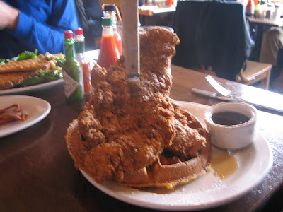 this weekend we Had an awesome brunch with the Potoczny-Jones on the east side. Carlos got the MOST Enormous chicken and waffles ever! It Was crazy delicious, as all of the dishes Were We Had (mmmm biscuits) at Screen Door at burnside east 24th and east
